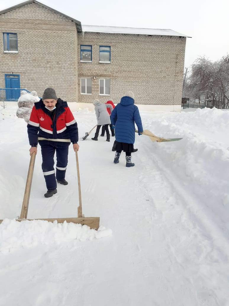 6 января коллектив МБОУ СОШ д.Бадряшево принял участие в экологической акции „Снежный субботник“. Очистили от снега и привели в порядок прилегающую территорию школы».