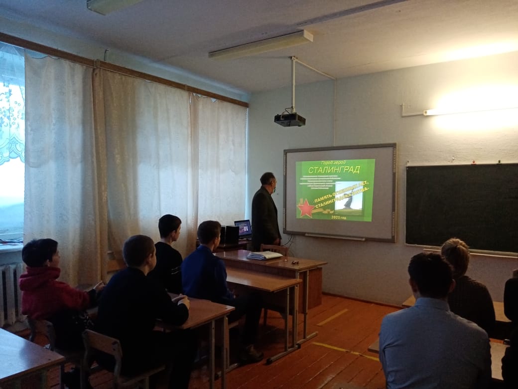 9 февраля для учащихся 8 класса на уроке ОБЖ был проведен урок мужества, посвященный 79 летию Сталинградской битвы «Мужество Сталинграда»