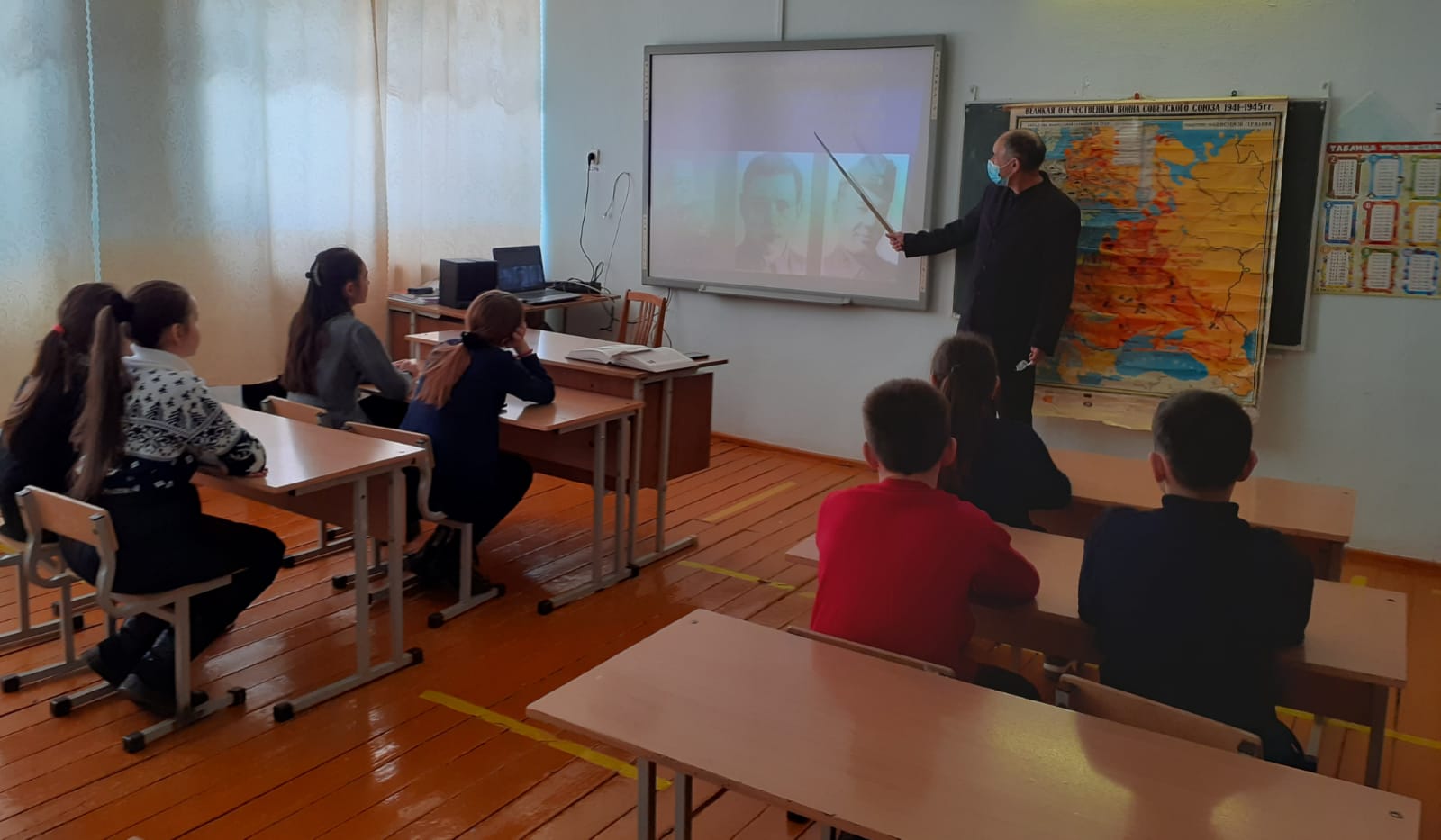 15 февраля в МБОУ СОШ д.Бадряшево учитель истории Гарипов Ф.К в 5 классе провел урок мужества «О подвигах генерал -мойора, командира легендарной 112 - й Башкирской кавалерийской дивизии М.М Шаймуратова и военного летчика, дважды Героя Советского Союза М.Г.Гареева." где обучающиеся ознакомились с биографией и боевыми подвигами наших знаменитых земляков.