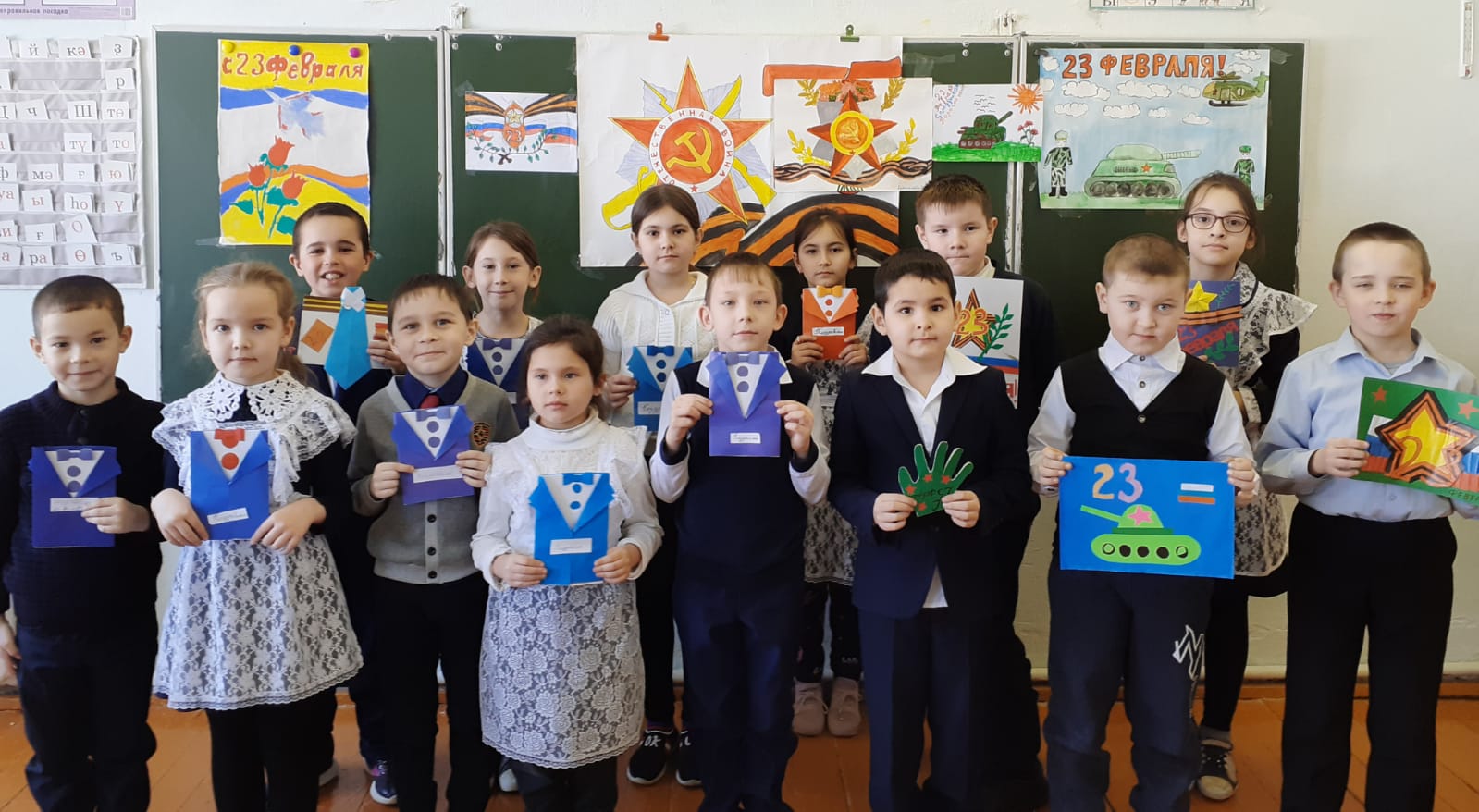 Накануне праздника Защитника Отечества ,22 февраля в НОШ с.Беляшево прошёл классный час,где познакомились с историей праздника,узнали о легендарных героях Башкортостана: Александре Матросове, Миннигали Губайдуллине,о герое- летчике Мусе Гарееве,узнали об их подвигах во время Великой Отечественной войны. А в конце спели песни для пап,дедушек,братьев и воинов, засняли на видео,которое отправили в родительский чат. Вместе с песней дети заранее изготовили подарки к этому празднику и с удовольствием поздравятсвоих близких.Также девочки поздравили своих