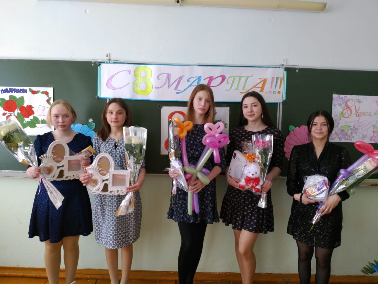8 Марта - самый удивительный, самый нежный праздник весны! Этот день особенный, он согрет лучами солнца, женскими улыбками, украшен россыпью цветов, нежностью. В преддверии праздника 5 марта в нашей школе прошло праздничное мероприятие, посвященное женскому дню. В школе этот день решили отметить интересной и веселой программой «А ну-ка, девочки!». В конкурсе приняли участие девочки из 8-10 классов.Участницы мероприятия соревновались в различных конкурсах: «Приветствие», «Домашнее задание. Песня о маме», «Клубочек», «Этикет», «Имя твое ласковое», «Конкурс на сообразительность», «Телеграмма», «Аукцион цветов», «Праздничное меню», «Юные поэтессы», «Золотой голос». Девчонки порадовали нас своим артистизмом, смекалкой, находчивостью, доставили немало удовольствия присутствующим, подняли всем настроение.