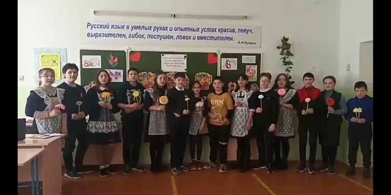 Вместе с весной к нам пришёл замечательный праздник - Международный Женский день 8 Марта. Этот день согрет лучами солнца, женскими улыбками, украшенными россыпью цветов. В 7 классе этот день решили отметить интересной и весёлой программой "А ну-ка девочки". Участницы мероприятия соревновались в различных конкурсах:"Приветствие", "Этикет", "Имя твоё ласковое", "Конкурс на сообразительность", "Аукцион цветов", "Юные поэтессы", "Конкурс танцемания". Девочки порадовали своим артистизмом, смекалкой, находчивостью. Улыбки и восхищение вызвало выступление группы поддержки мальчиков. В завершении мероприятия учащиеся с большой любовью спели песню мамам и отправили видеопоздравление.