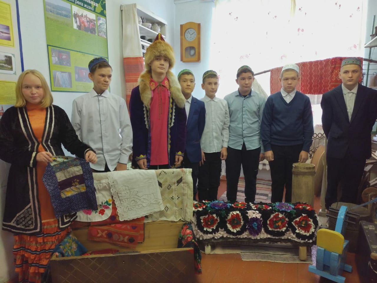 В краеведческом музее школы с 8 классом прошли фольклорные посиделки «Бабушкин волшебный сундучок», посвященной Дню национального костюма народов Республики Башкортостан.