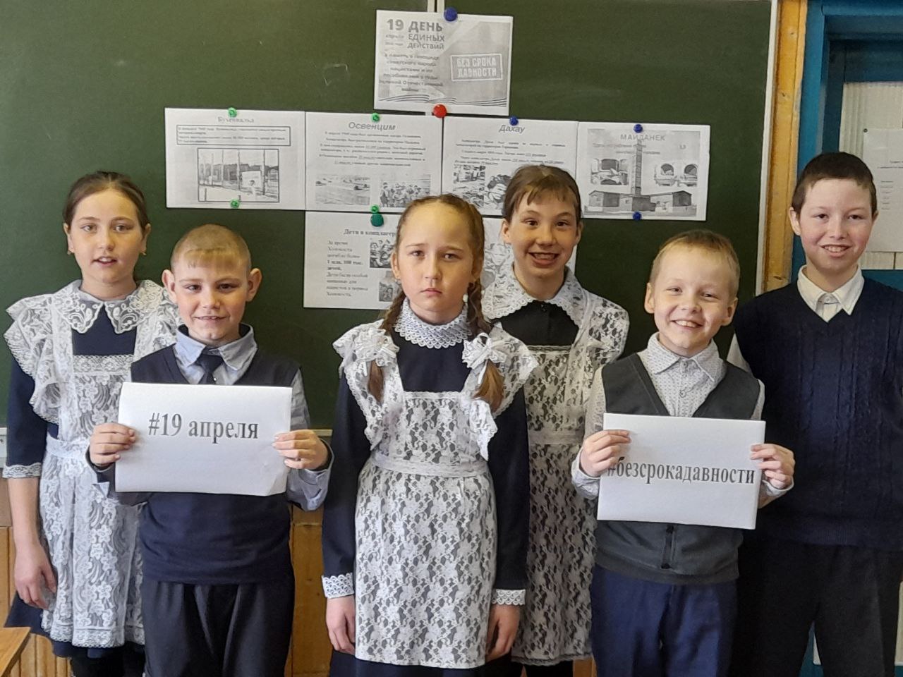 В рамках Всероссийской акции -День единых действий в память о геноциде советского народа нацистами и их пособниками в годы Великой Отечественной войны, 19 апреля проведен классный час "Фашистские преступления" с целью расширения знаний о судьбах людей в годы оккупации фашистами, затронуть души детей и развить в них чувство сострадания и патриотизма.