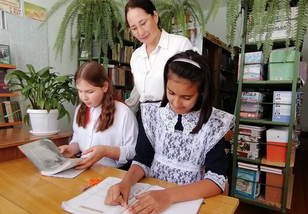 Участники акции в школьной библиотеке провели работу по ремонту книг, навели порядок в книжных полках.