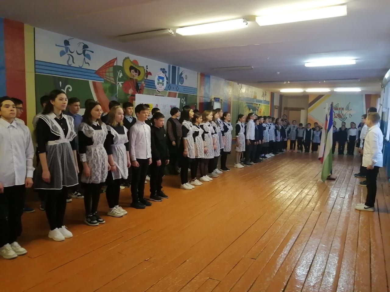 В МБОУ СОШ д.Бадряшево продолжается еженедельная церемония поднятия государственных флагов и исполнения гимнов Российской Федерации и Республики Башкортостан.