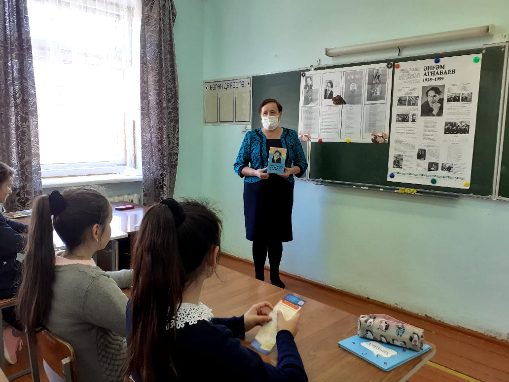 13 октября -День памяти народного поэта Башкортостана Ангама Атнабаева. Библиотекарь школы совместно с учителями башкирскогго языка и литературы провели урок памяти, посвященный народному поэту Башкортостана Ангаму Атнабаеву.
