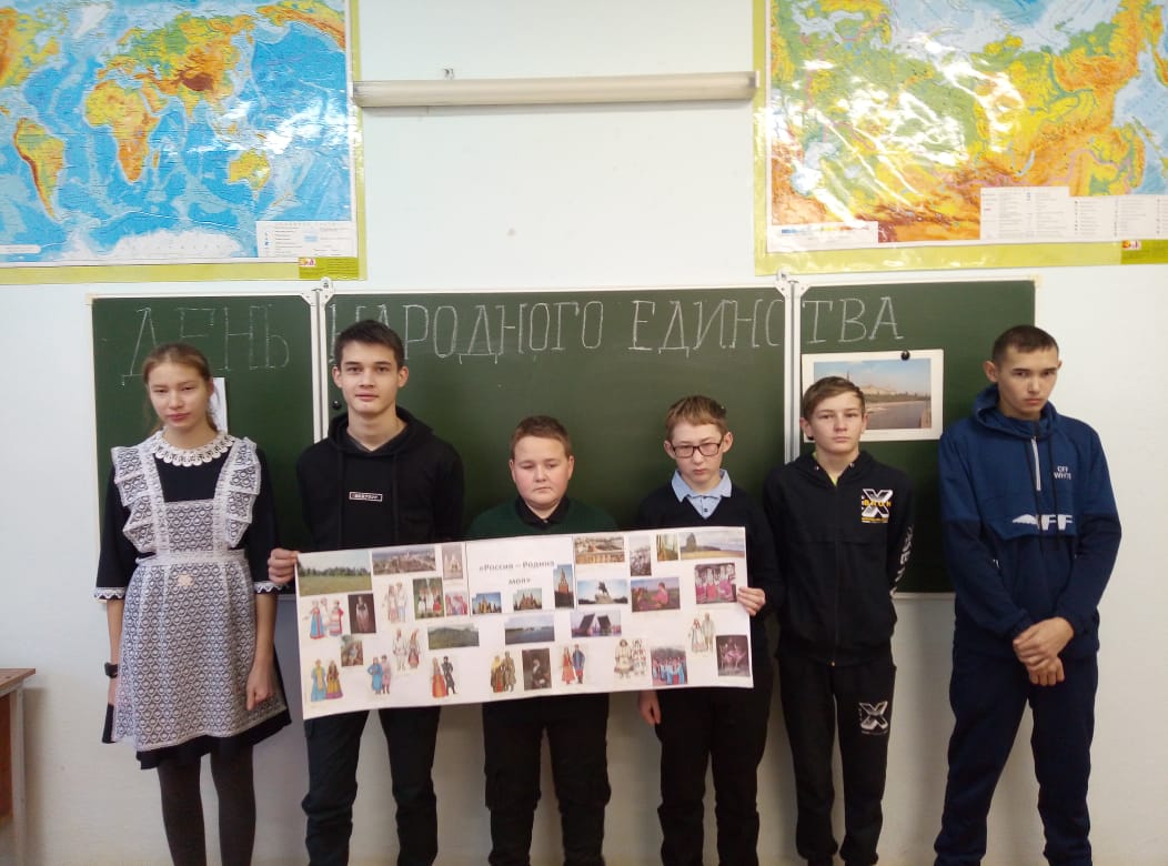 Ко Дню народного Единства в МБОУ СОШ д.Бадряшево прошли мероприятия. Участниками стали учащиеся 9 класса.