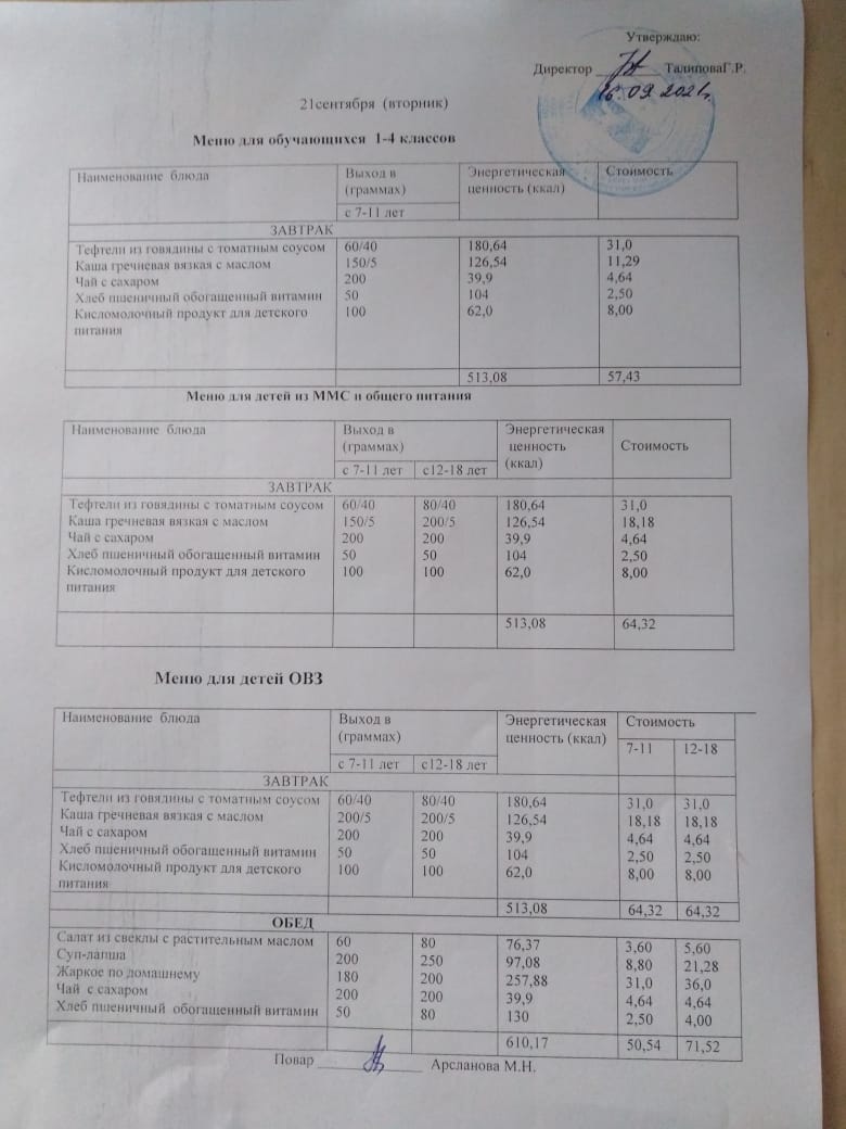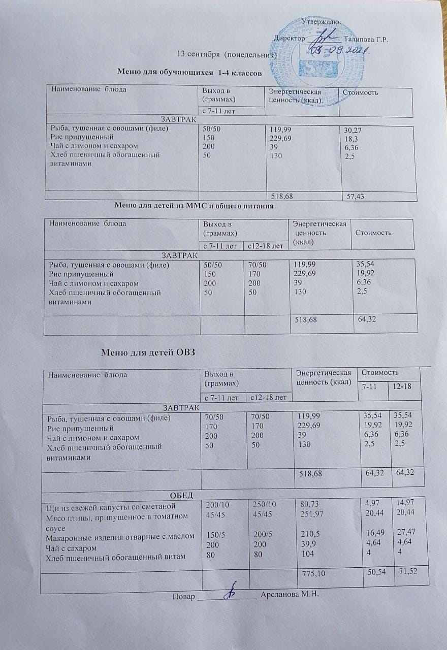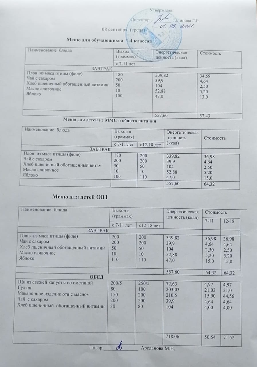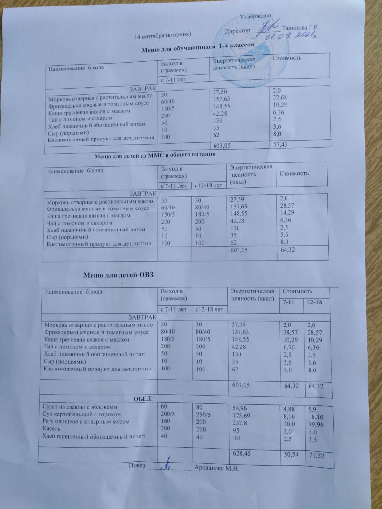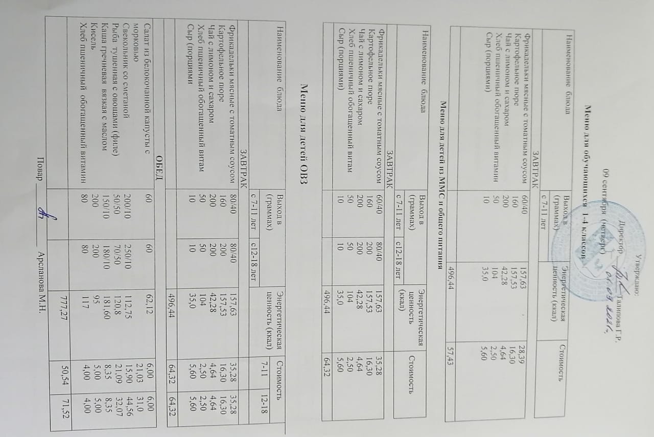 Стоимость школьного питания