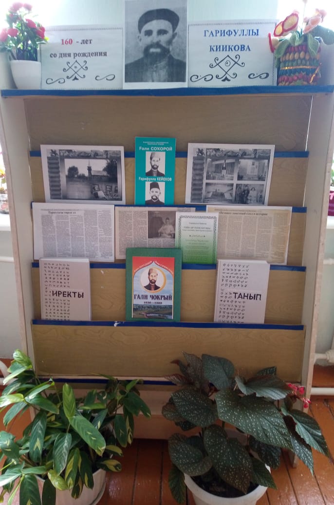 Книжная выставка посвящённая к 160 летию со дня рождения известного поэта, просветителя, публициста и ученого-историка Гарифуллы Киикова